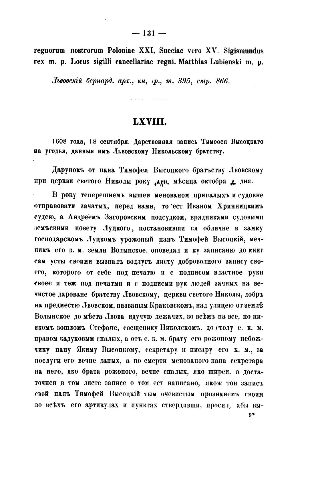 свой панъ Тимофей Высоцыјй тым очевистым признанемъ своим