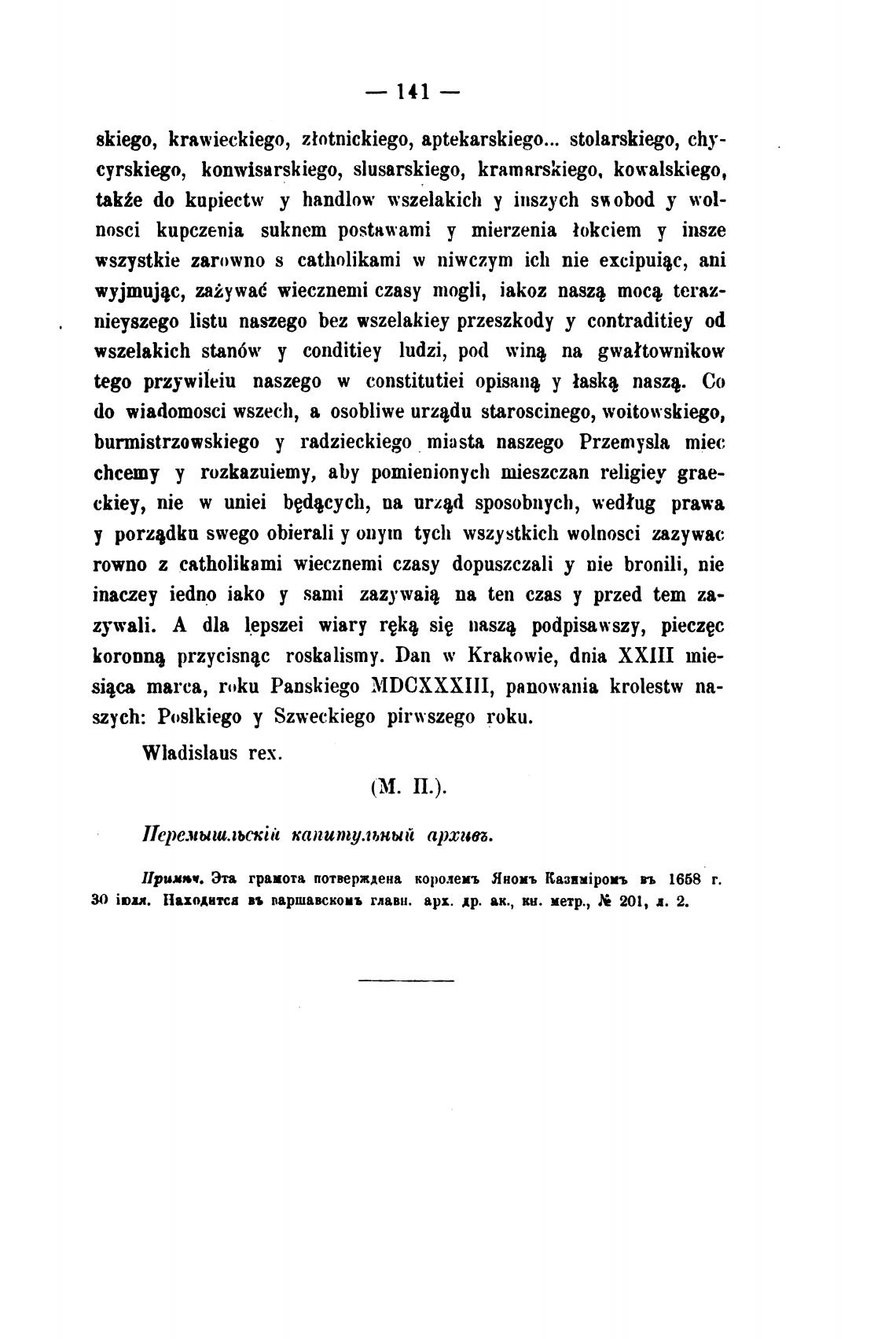 Ирих»ч. Эта грамота потверждена королеиъ Яноиъ Казимђ)оиъ гь 1668 г.