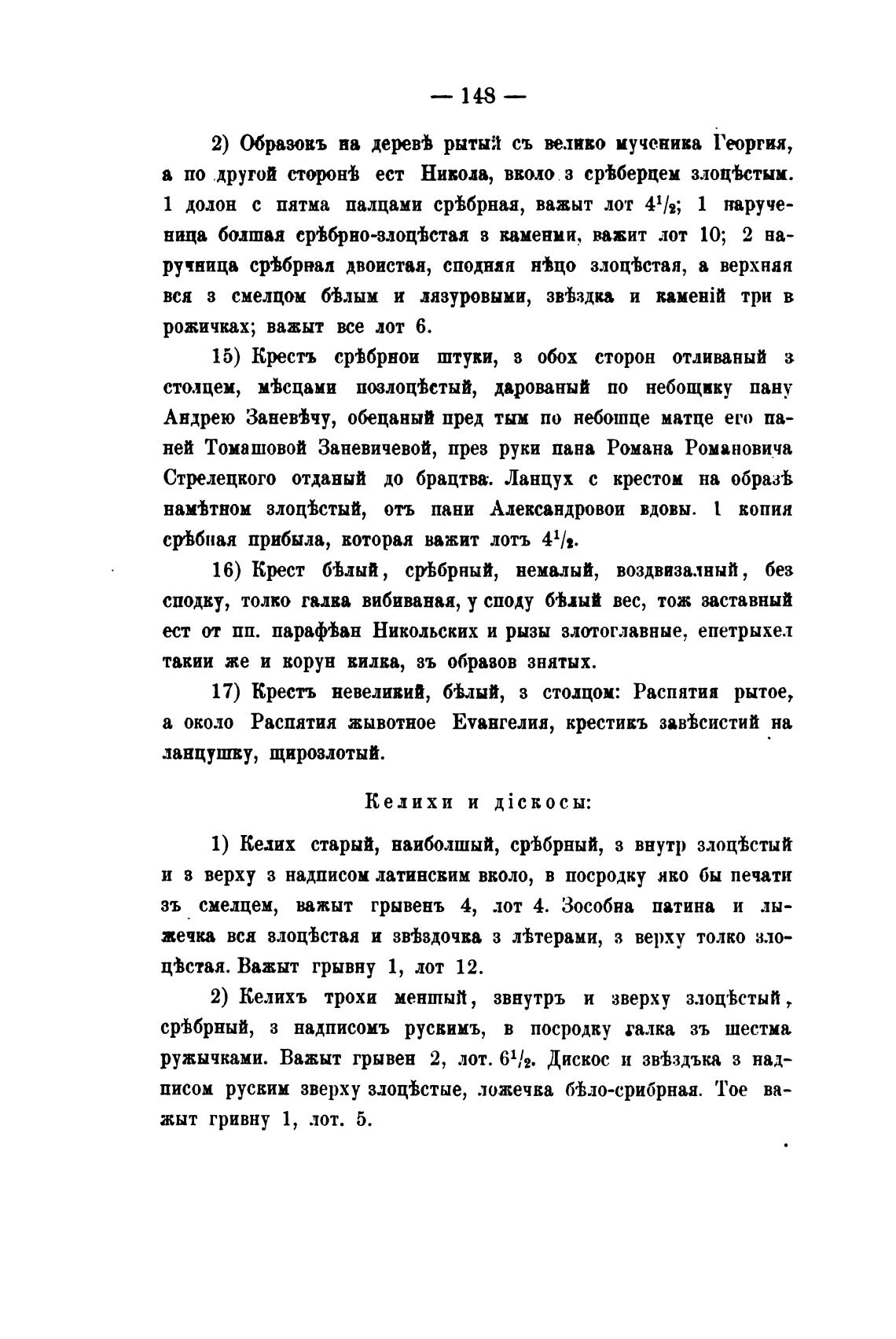 2) Келихъ трохи ментый, звнутръ и зверху злоц•Ьстый