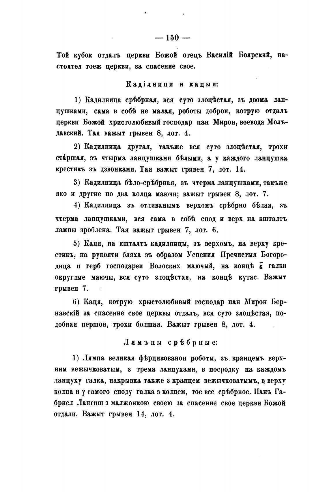 Той кубов отдалъ церкви Божой отецъ Боярский,