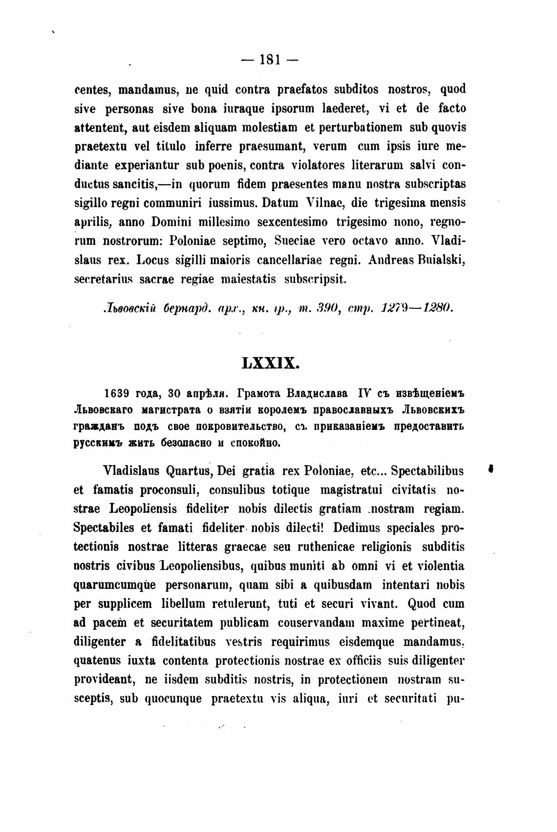 1639 года, 30 апрјли. Грамота Владислава IV съ