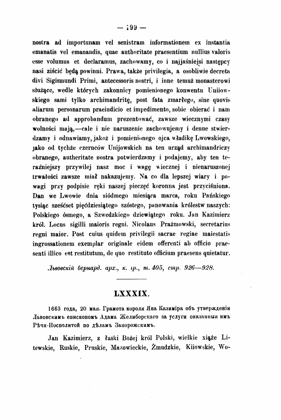 1663 года, 20 мал. Грамота короля Яна объ