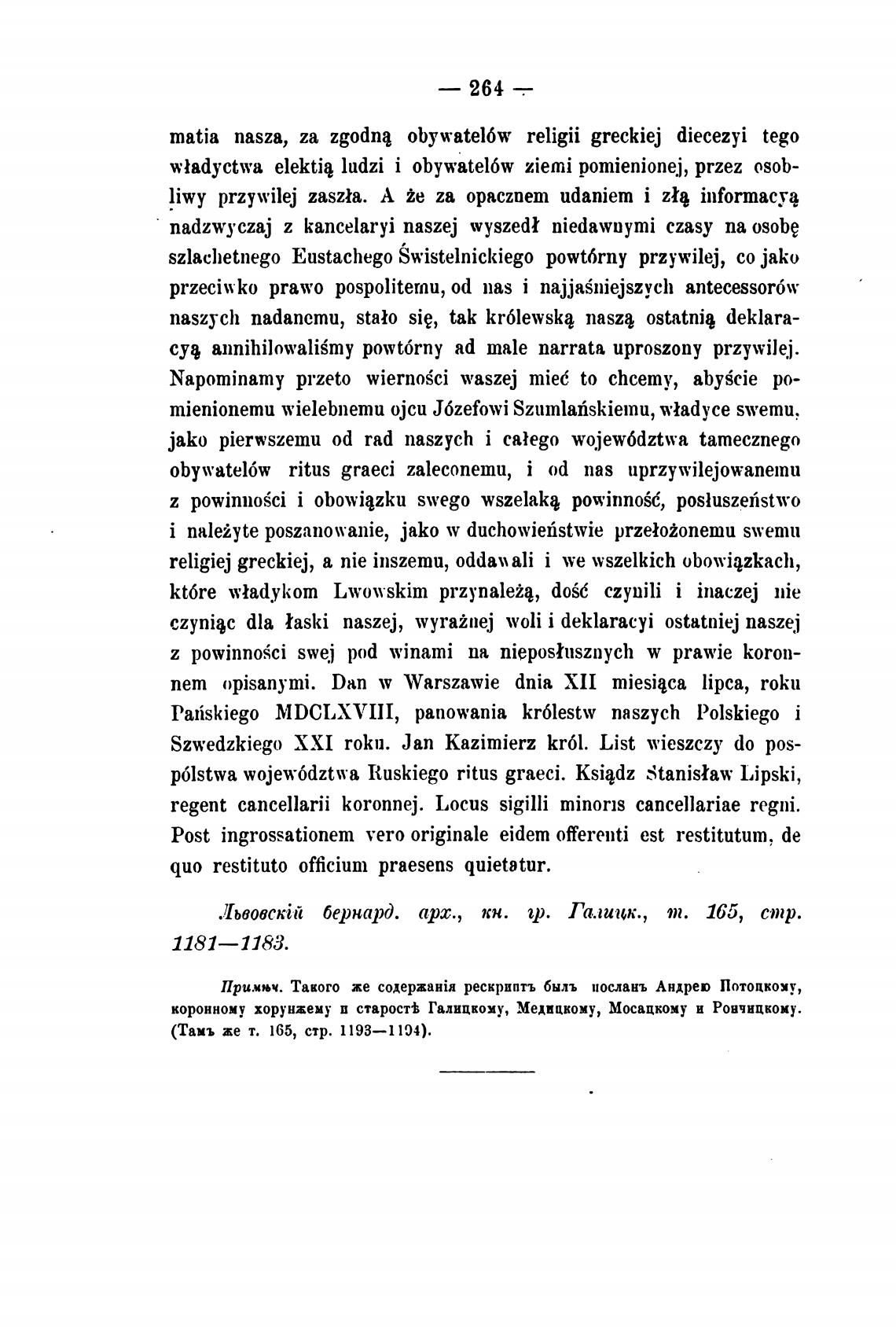 .Иьвовскгп бернарД. арх., кн. И). Галиик., т. 165, стр.