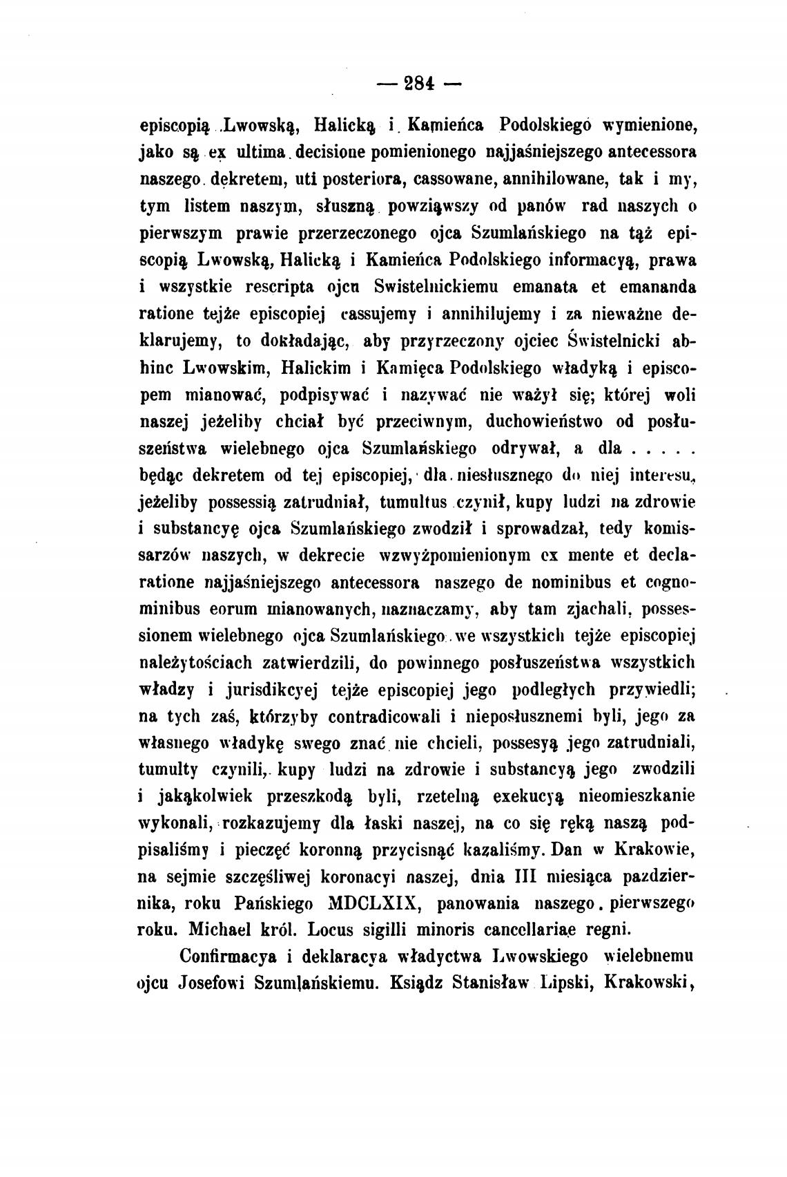 pierwszym prawie przerzeczonego ојса Szumlaiskiego па Цй epi-