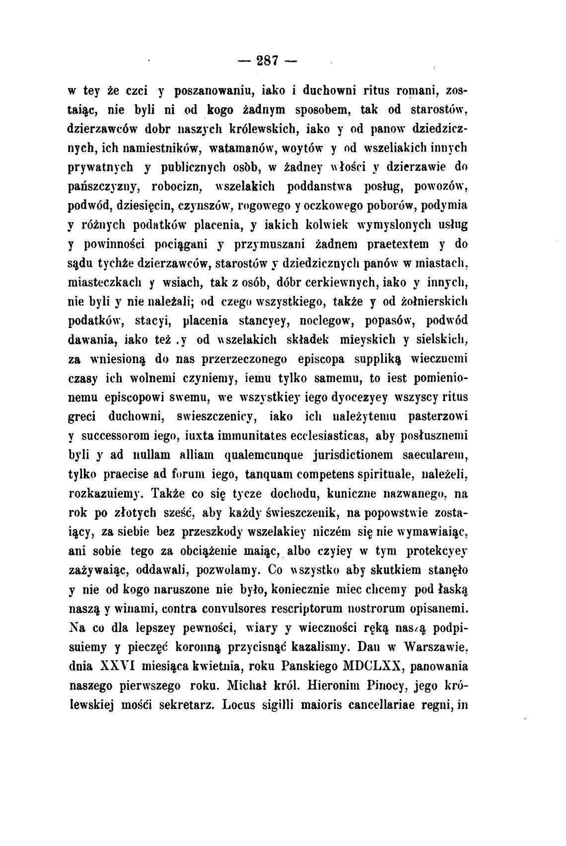 lewskiej moSCi sekretarz. Locus sigilli maioris cancellariae regni, in