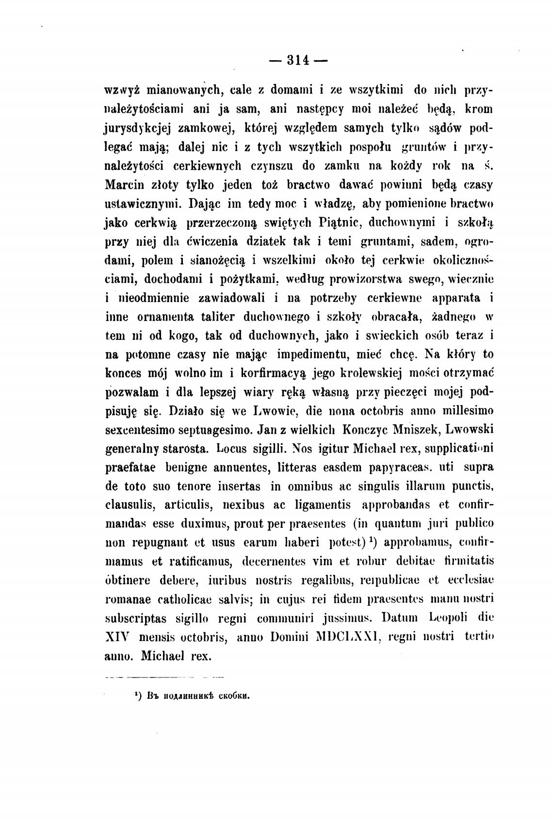 generalny starosta. Locus sigilli. Nos igitur Michael тех, supplicatinni