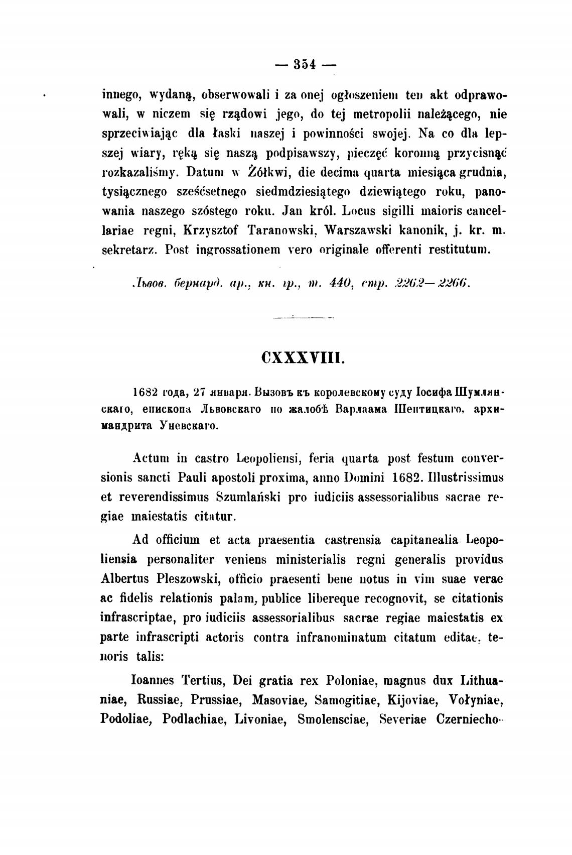 1682 сода, 27 инвара. Вызовъ кь королевскому суду 1осифа Шумлжн•