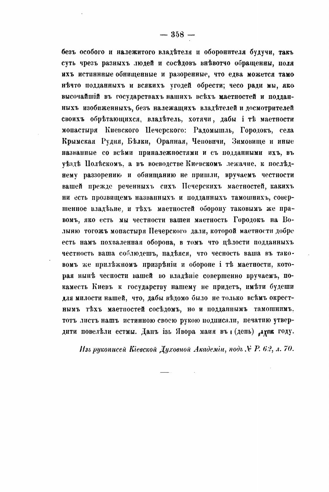 уТзд•Ь Пол•Ьскомъ, а въ воеводстве Киевскомъ лежачие, к послы-