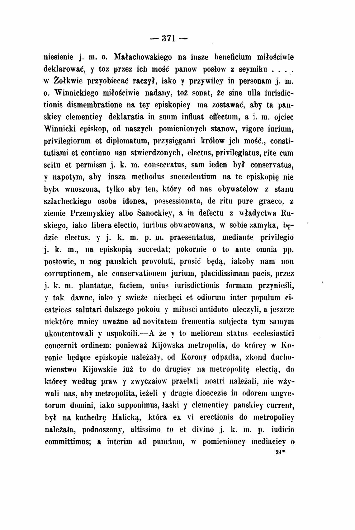 Winnicki episkop, od naszych pomienionych stanow, vigore iurium,