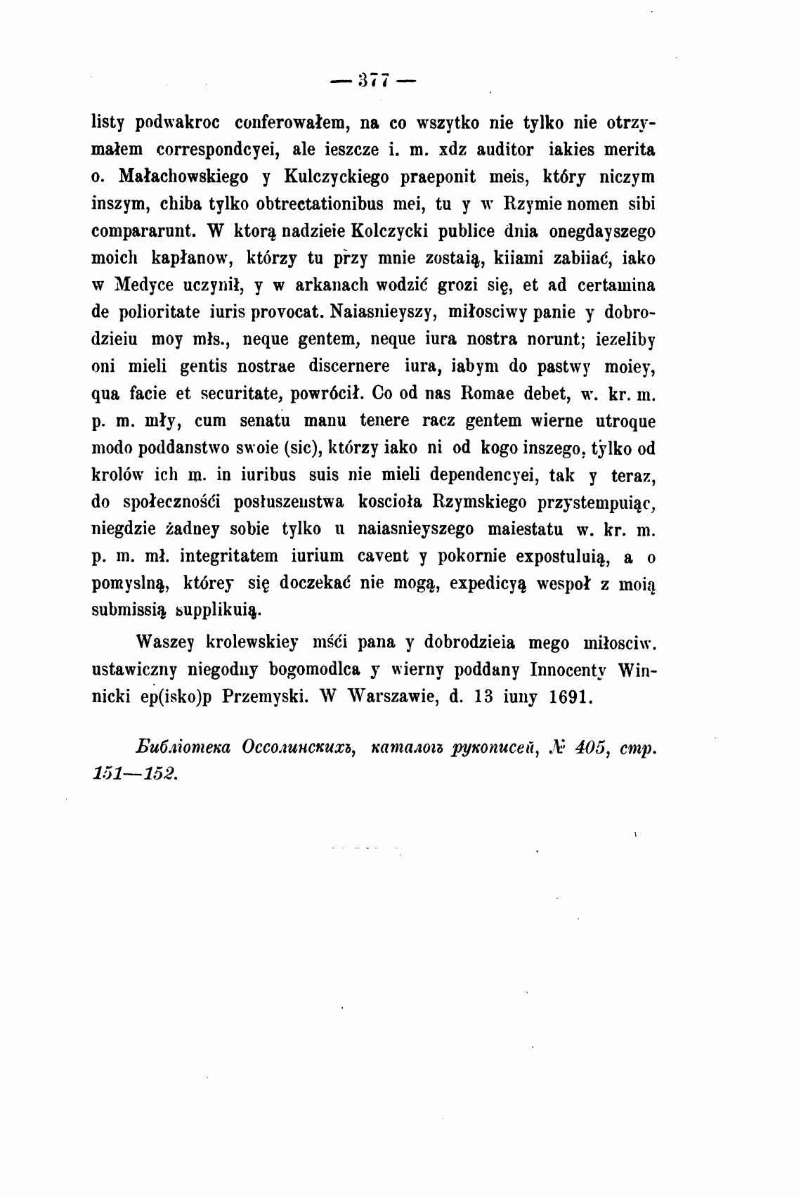 Оссолинскихь, каталои рукописей, Л: 405, стр.