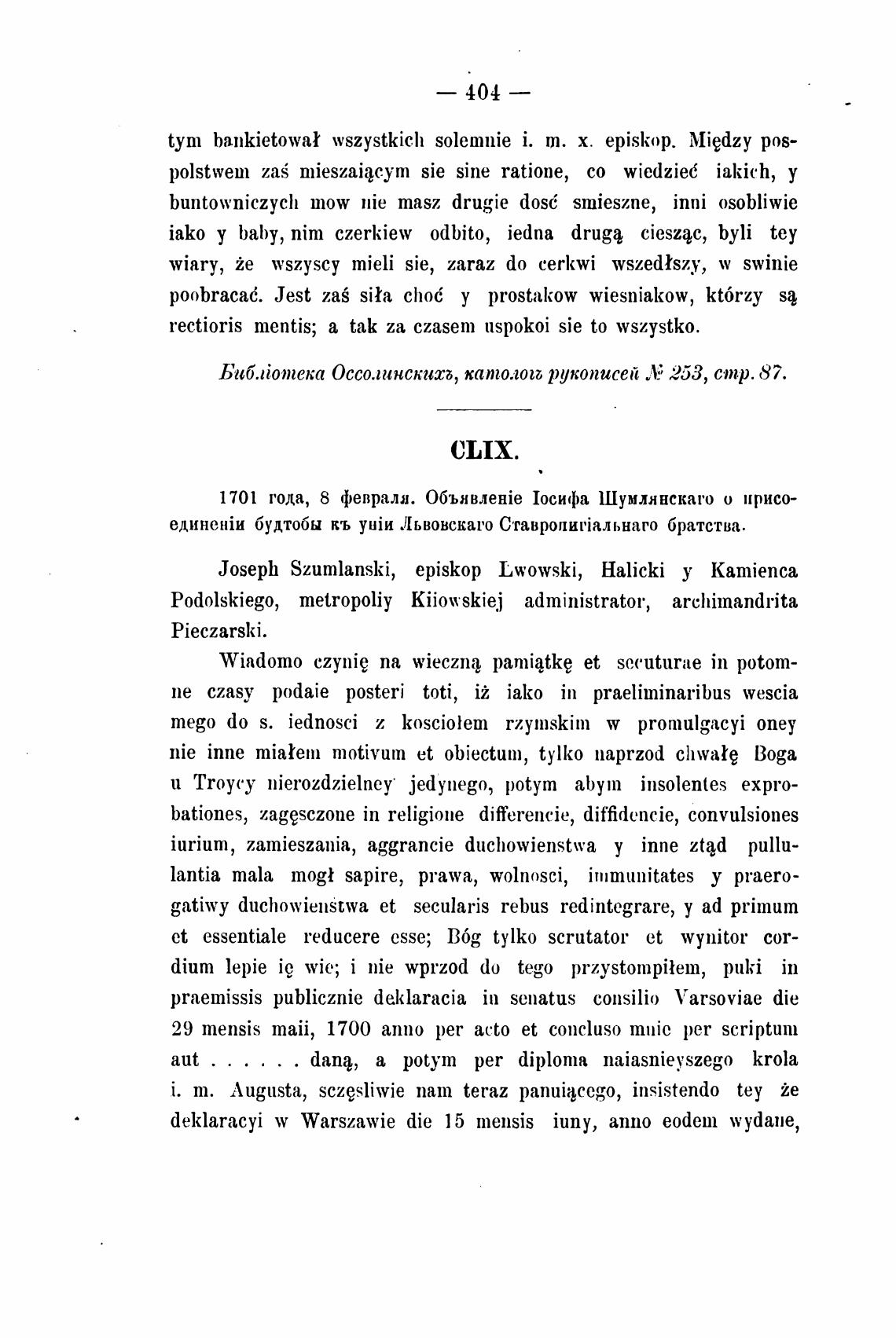 Биб.потека Оссолинскитб, католоег, рукописей „У 253, стр. 87.