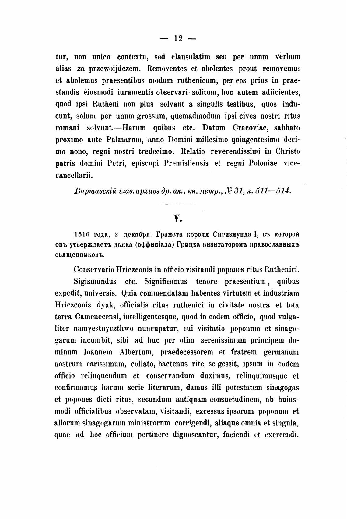 1516 года, 2 декабря. Грамота короля Сигизмунда 1, въ которой