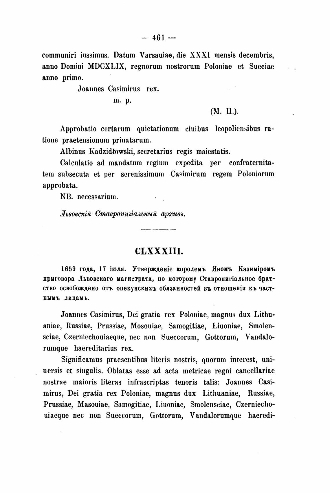 tem subsecuta et рет serenissimum Casimirum regem Poloniorum