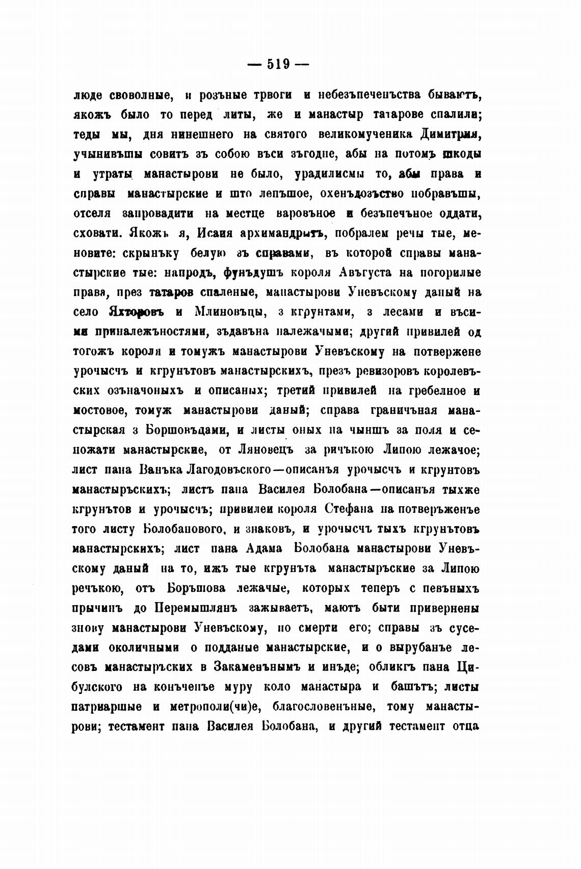 сховати. Якожь я, Исаия архимандритъ, побралем речы тые, ме-
