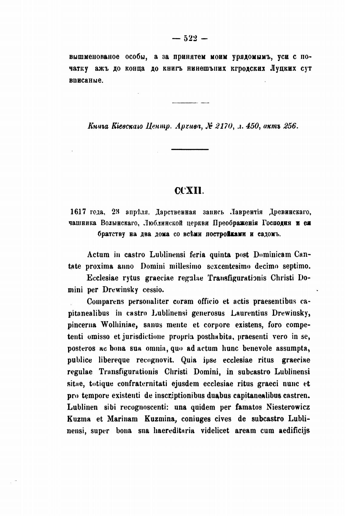 чашника Волынскаго, Люблинской церкви Господня и ва