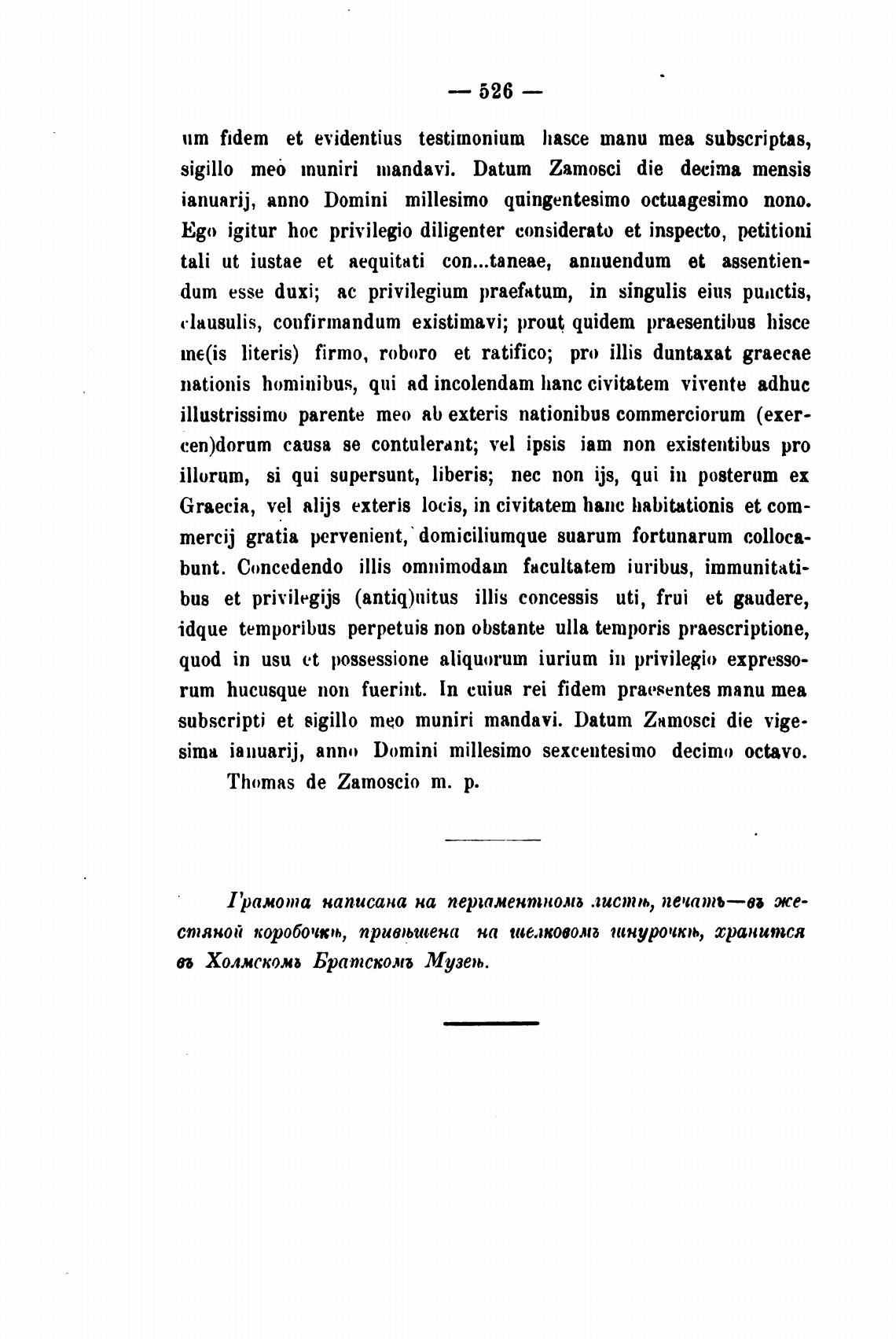 subscripti et 8igillo тео muniri mandavi. Datum Zamosci die vige.