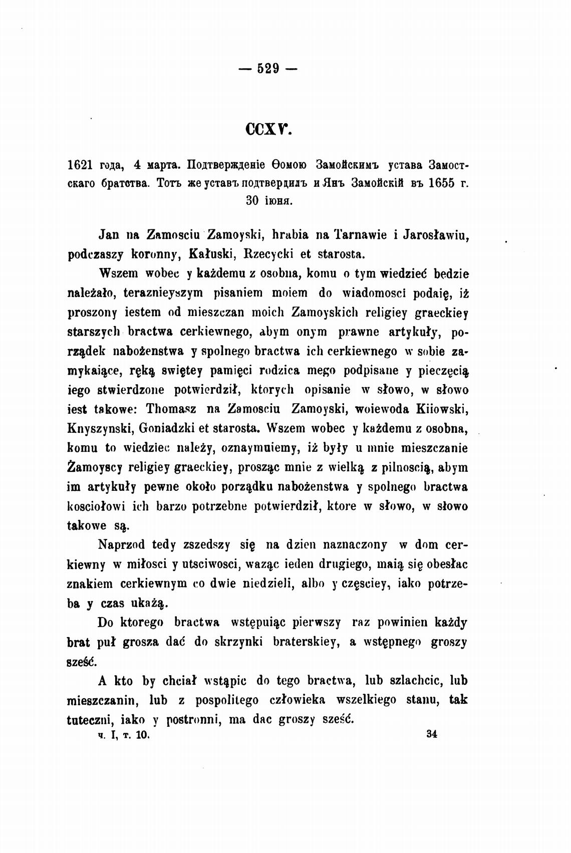 1621 года, 4 марта. Оомою Замойскимъ устава Замост-