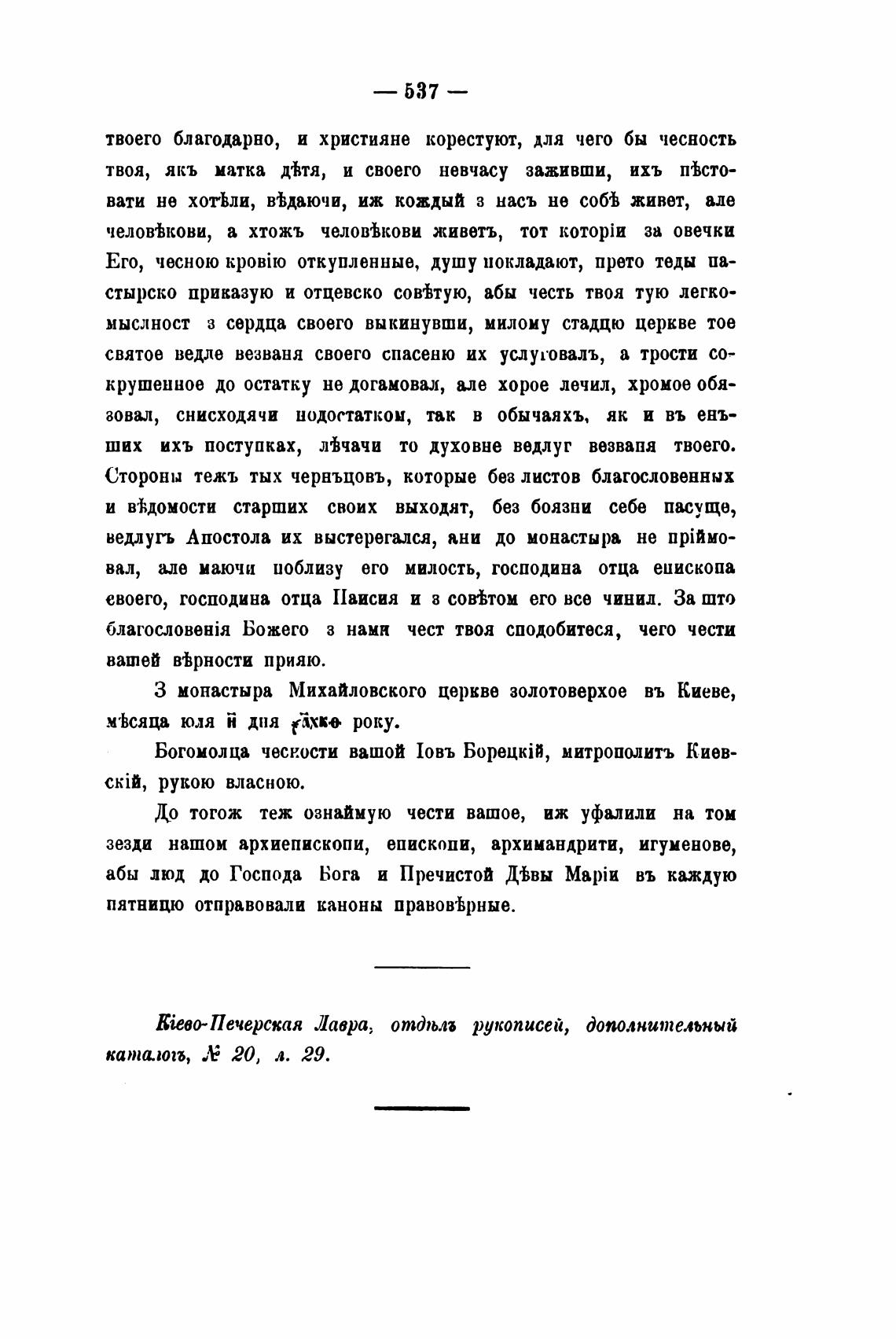 Богомолца чесности вашой 1овъ митрополитъ Киев-