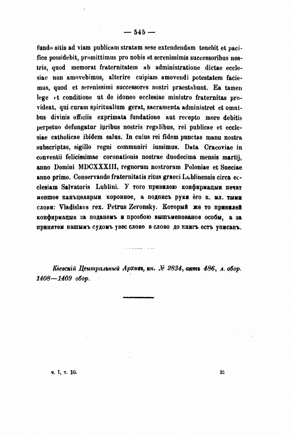 слови: V1adislaus тех. Petrus Zeronsky. Который же то привилей