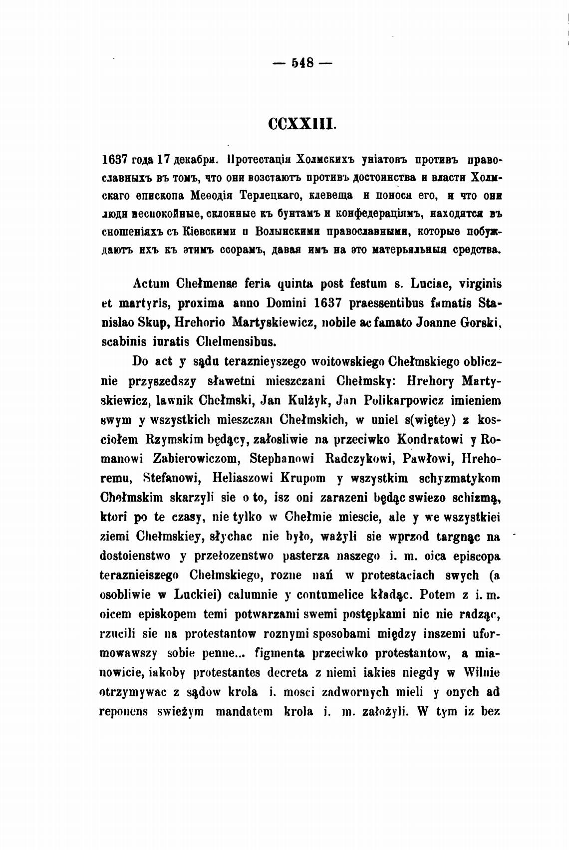 1637 года 17 декабри. Холмскихъ YHiaT0Bb противь право-