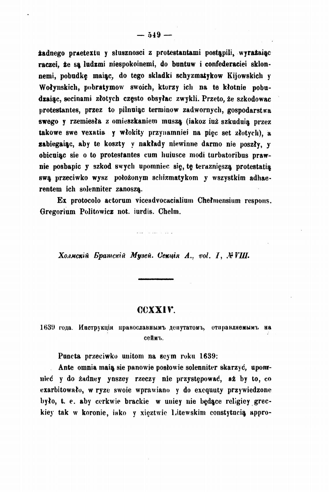 Gregorium Politowicz not. iurdis. Chelm.