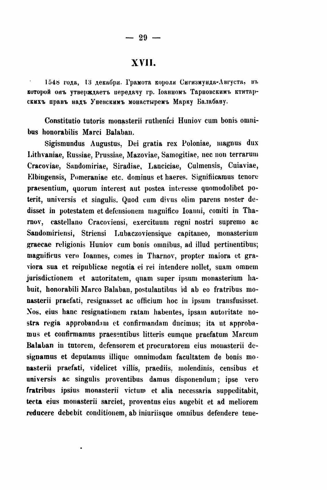 1 548 года, 13 декабря. 1'рамота КОРОЛИ Сигизмунда-Августа, въ