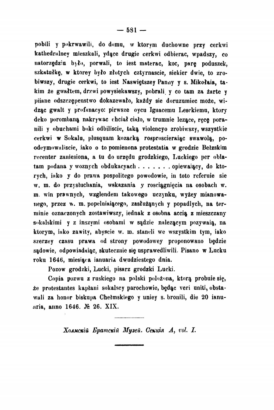 c.erkwi w Sokalu, plusquam kozack} rosproscieraiy swawolq, ро-