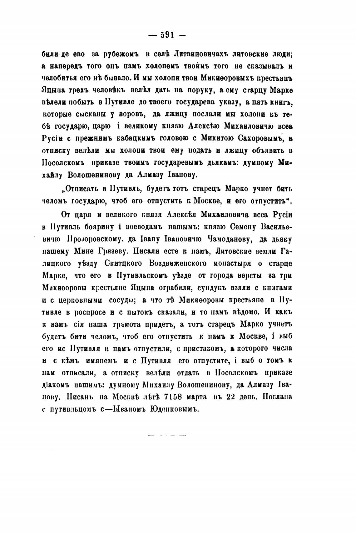 к вамъ наша грамота придетъ, а тотъ старецъ Марко учнетъ