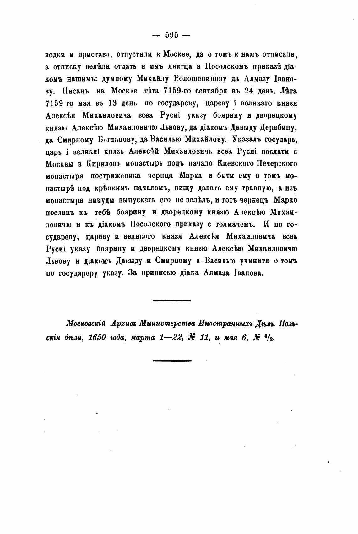 комь нашимъ: думному Михайлу Ролошенинову да Алмазу 1вано-