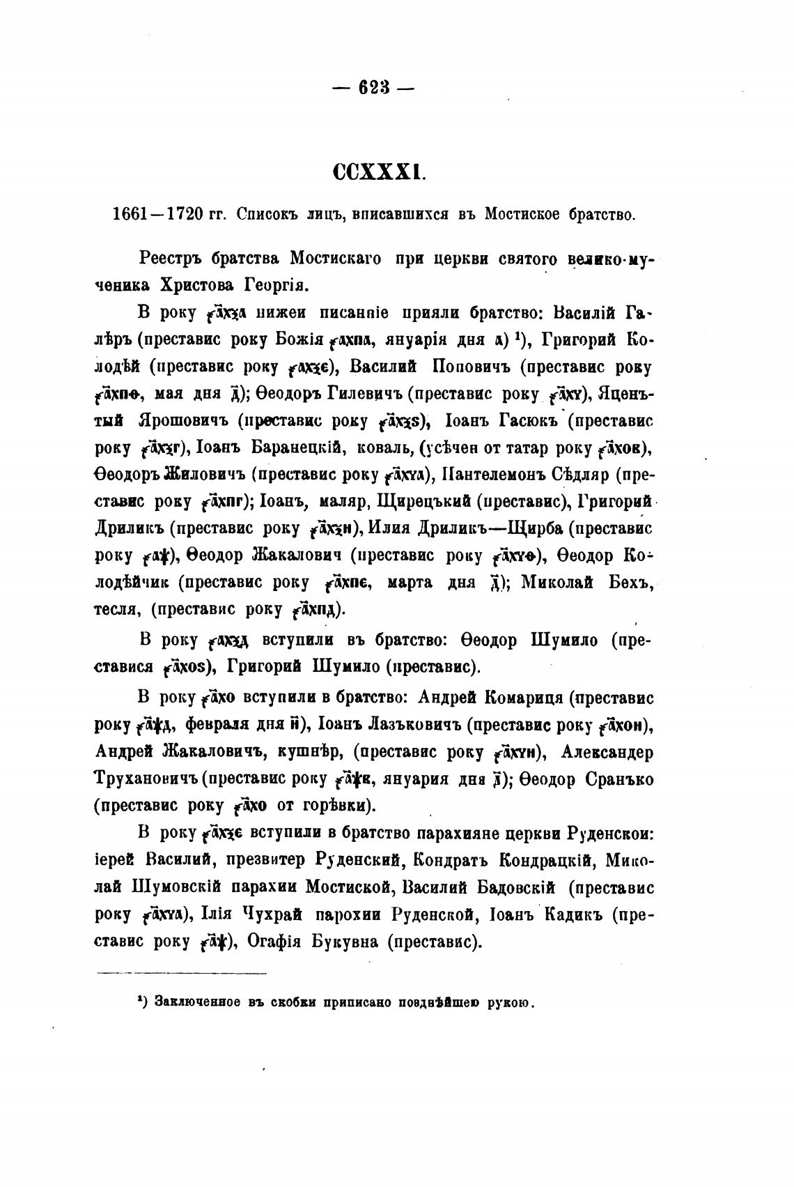 1661 —1720 гг. Списокъ јицъ, вписавшихся въ Мостиское братство.