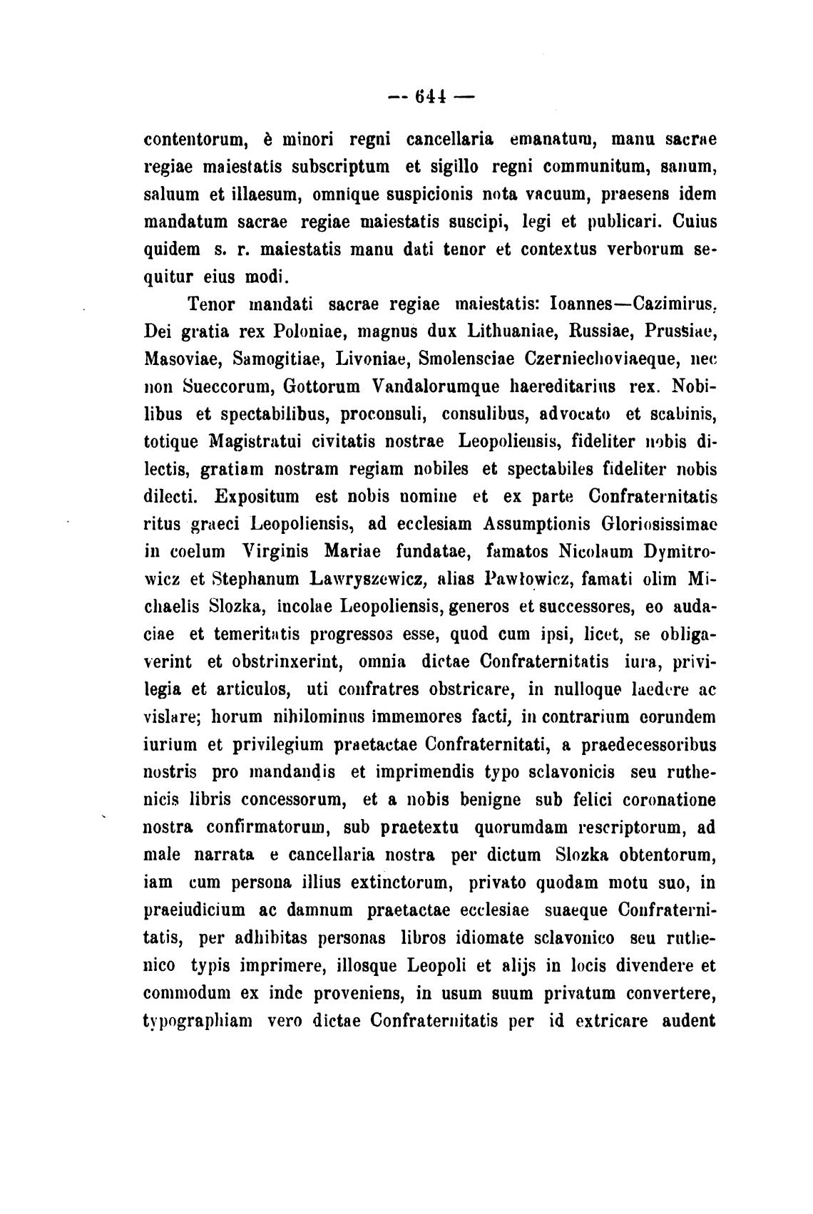 Tenor mandati sacrae regiae maiestatis: Ioannes—Cazimirus: