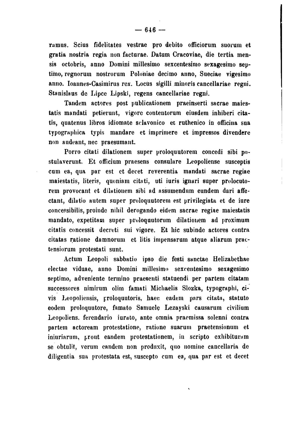 eodem proloquutore, famato Samuele Lezayski causarum civilium
