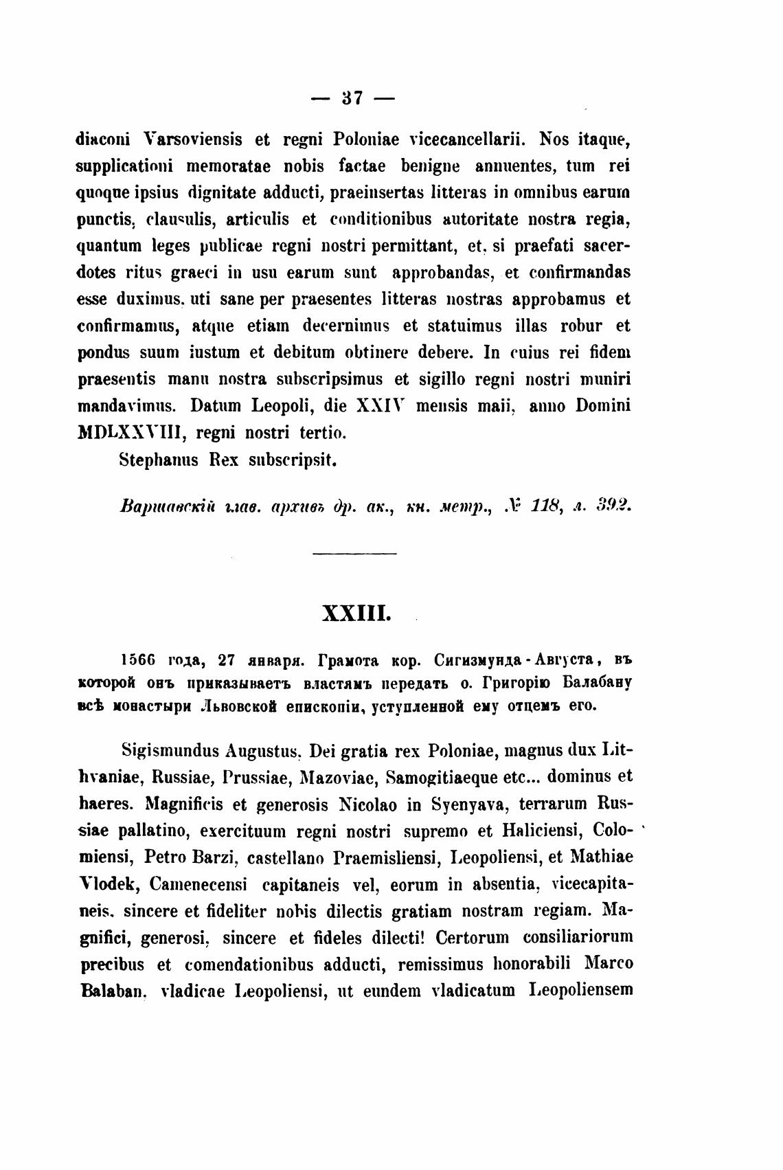 1566 года, 27 анварн. Грамота кор. Сигизмунда - Августа, въ