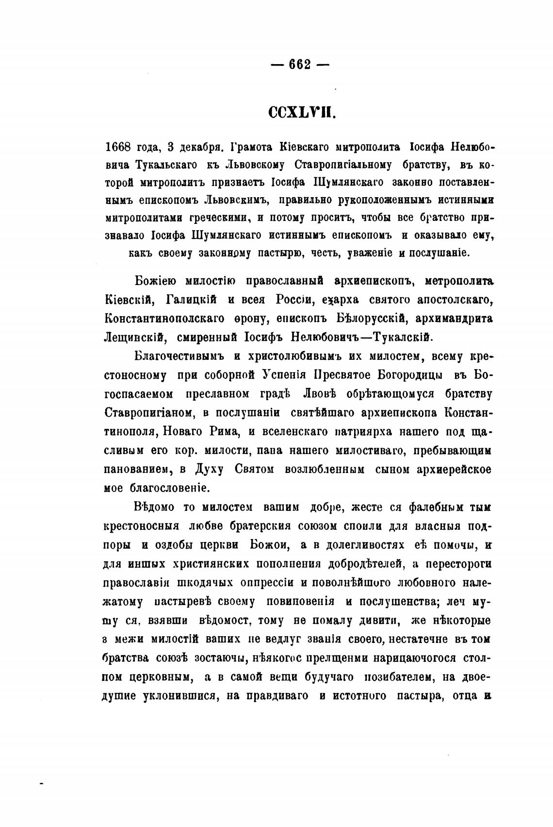 1668 года, 3 декабря. Грамота kieBckaro митрополита Иосифа Нелюбо-