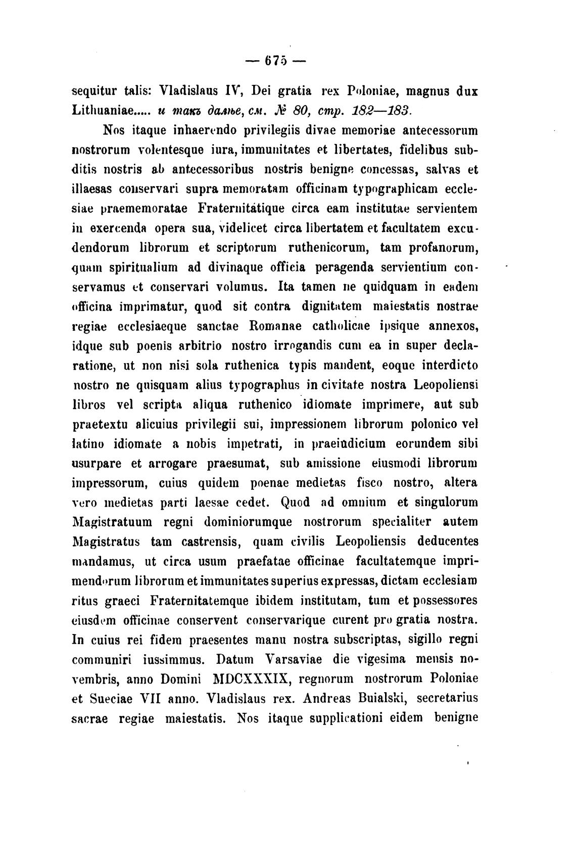 vembris, аппо Domini MDCXXXIX, regnorum nostrorum Poloniae