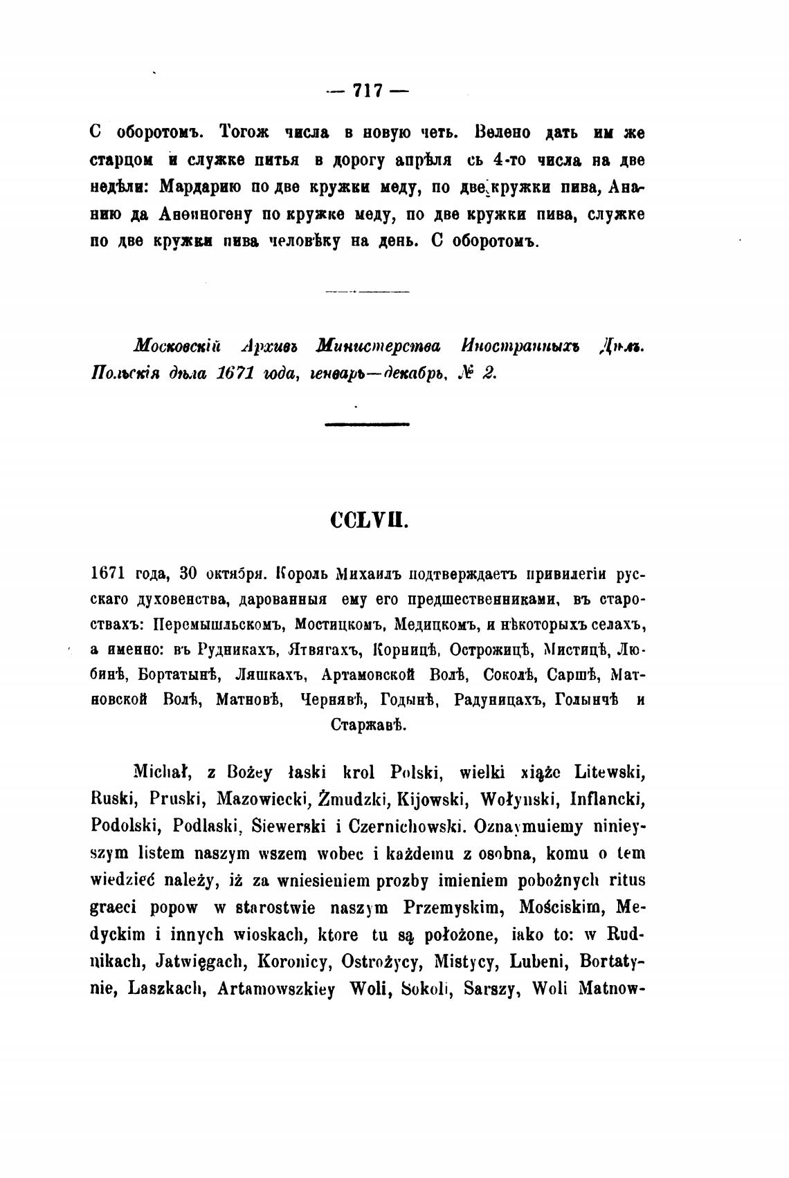1671 года, 30 октя5ря. Король Михаидъ подтверждаеть рус-