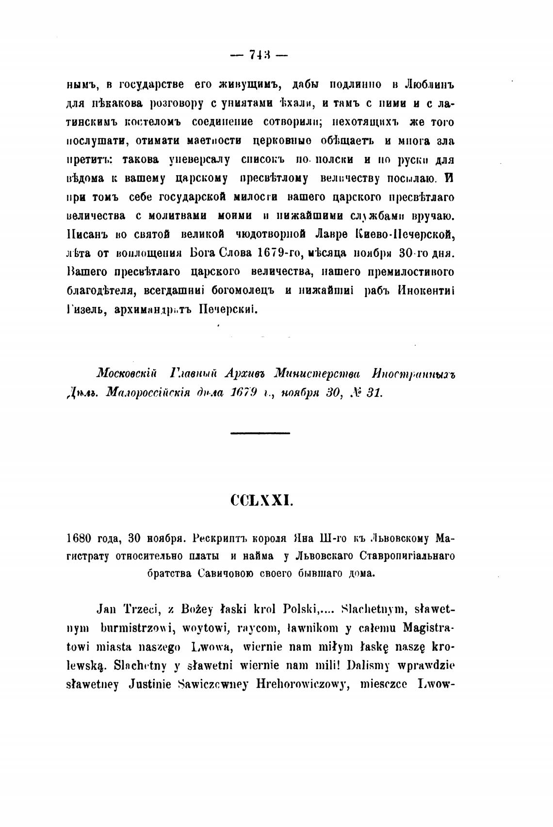 1680 года, 30 ноября. Рескриптъ короля Яна Ш-то кь .аьвовскому Ма-