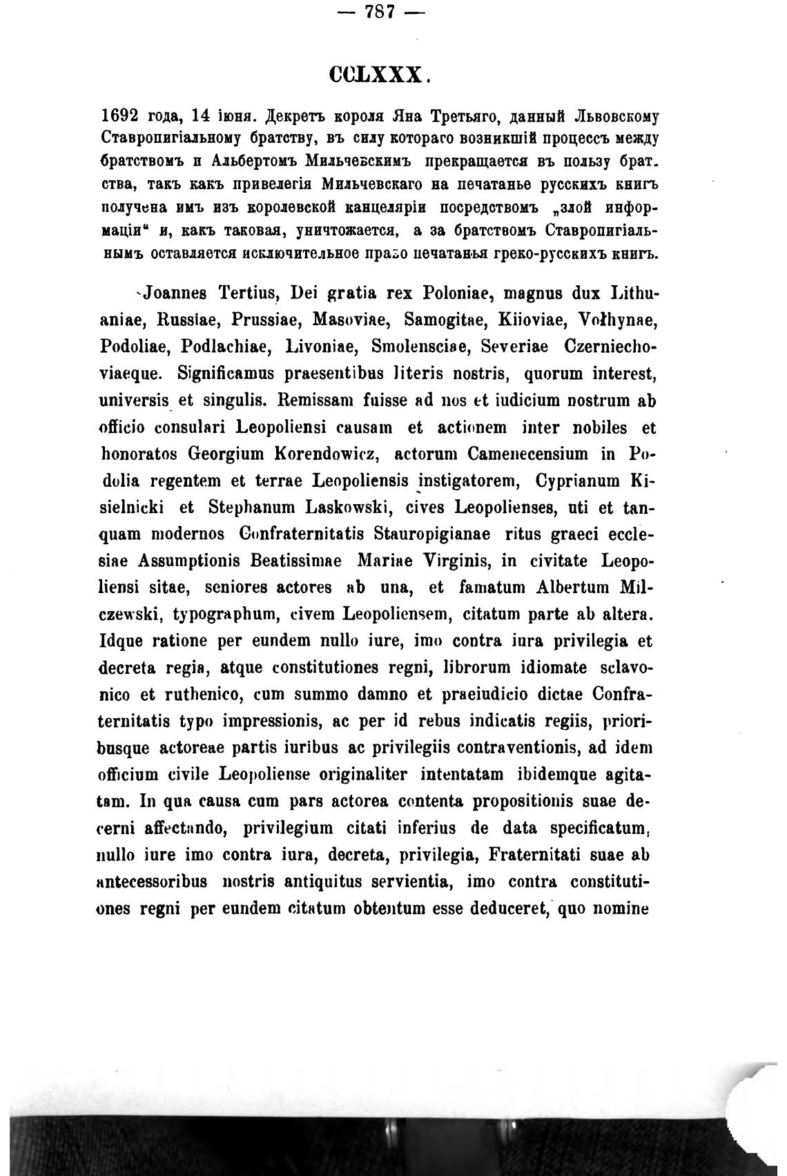 1692 года, 14 Декреть короля Яна Третьяго, данный Львовскому