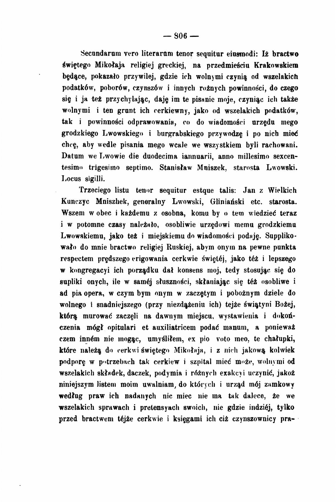 tesimn trigesimo septimo. Stanis*aw Mniszek, starosta Lwowski.