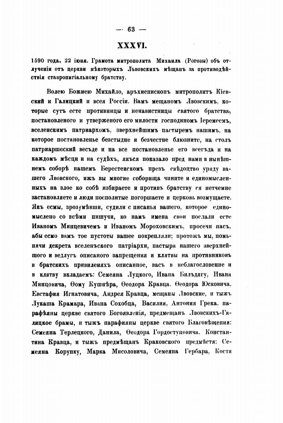отъ церкви н'Ькоторыхъ Львовсвихъ мтщанъ за иротивод"-
