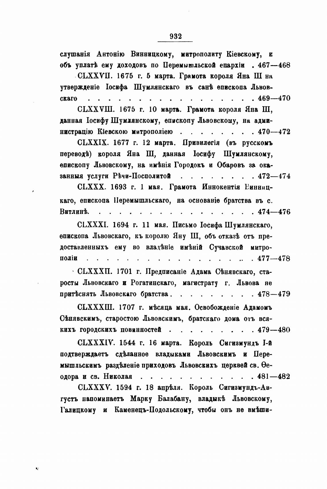 CLXXVU. 1675 г. 5 марта. Грамота короля Яна Ш на