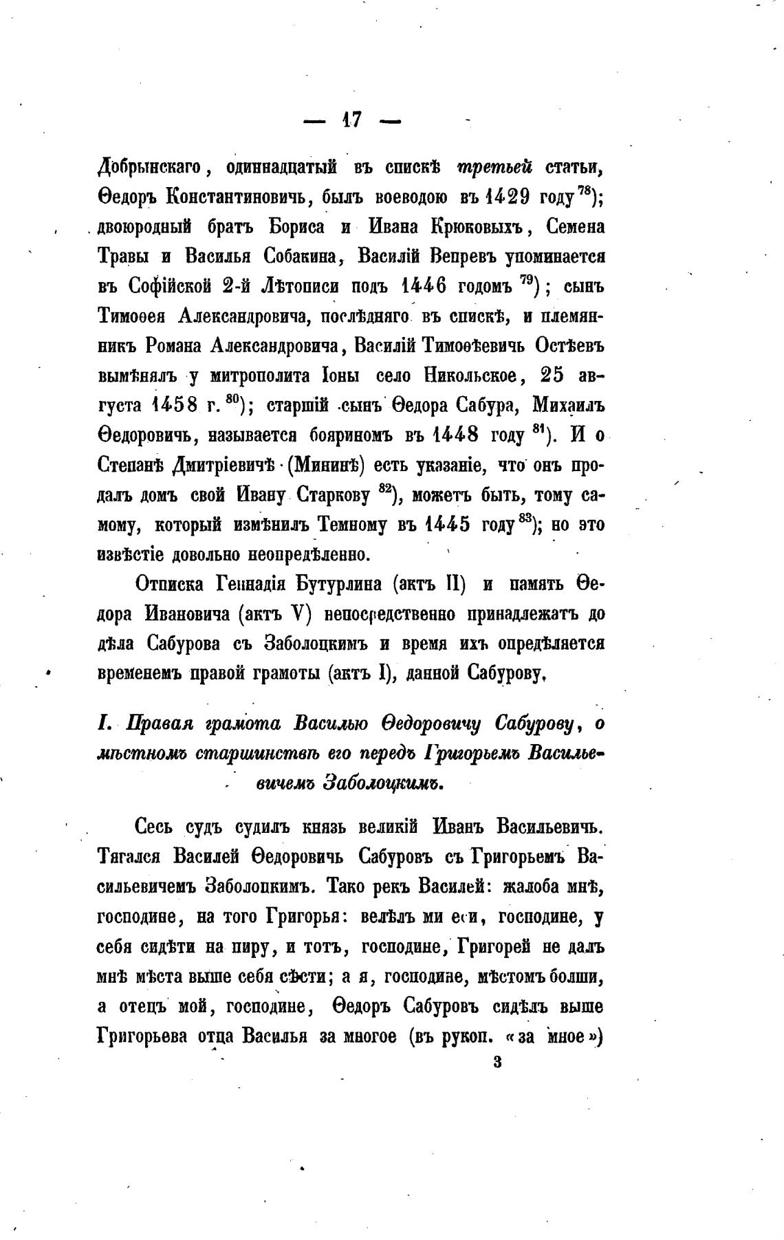 временемъ правой грамоты (анть 1), данной Сабурову,
