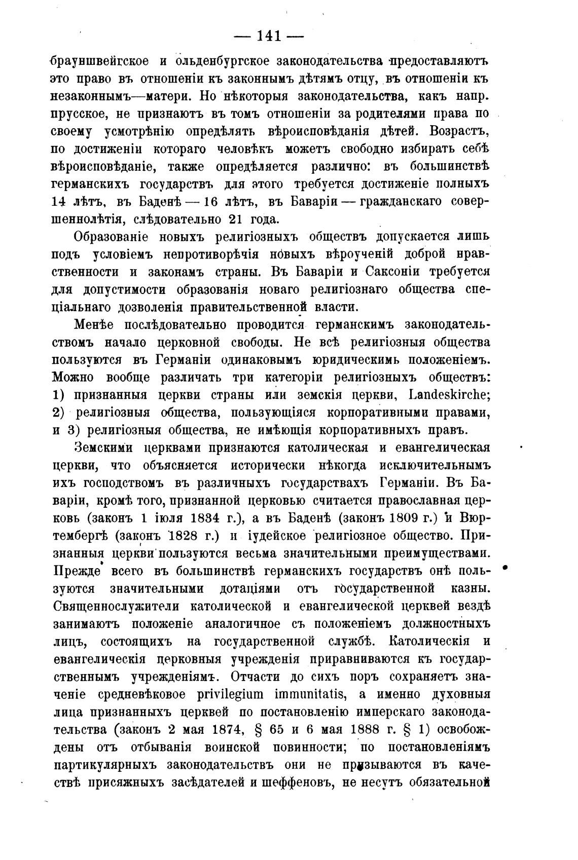 лица признанныхъ церквей по имперскаго законода-
