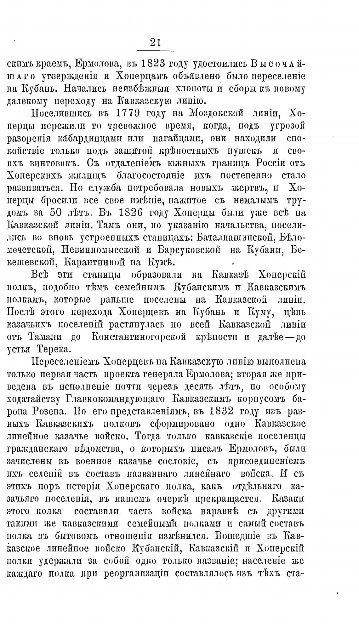 Пос.тђ этого перехода Хоперцевъ на Кубань и Куму, Ц'Ьпь