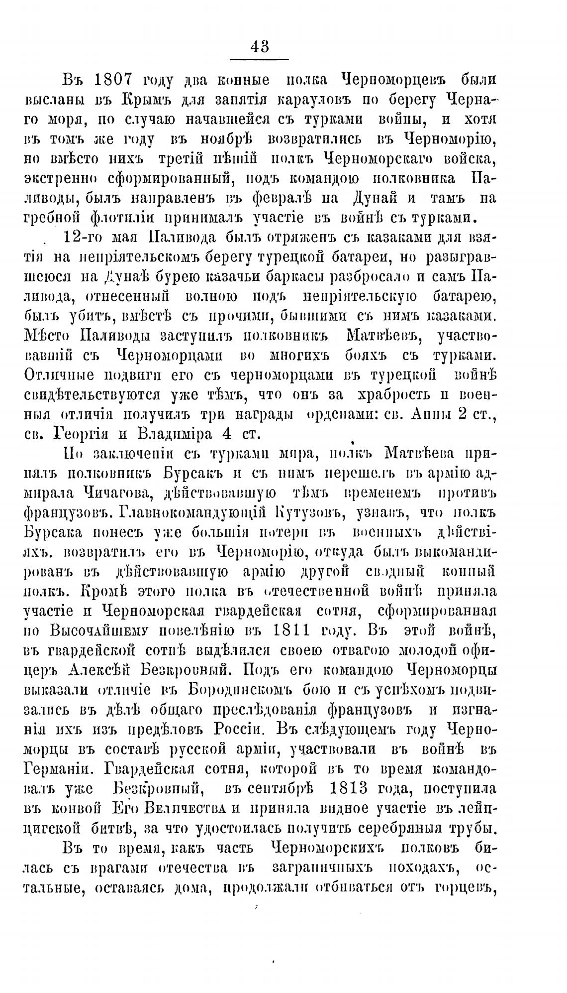 Отличные подвигп его съ черноморцами въ турецкой