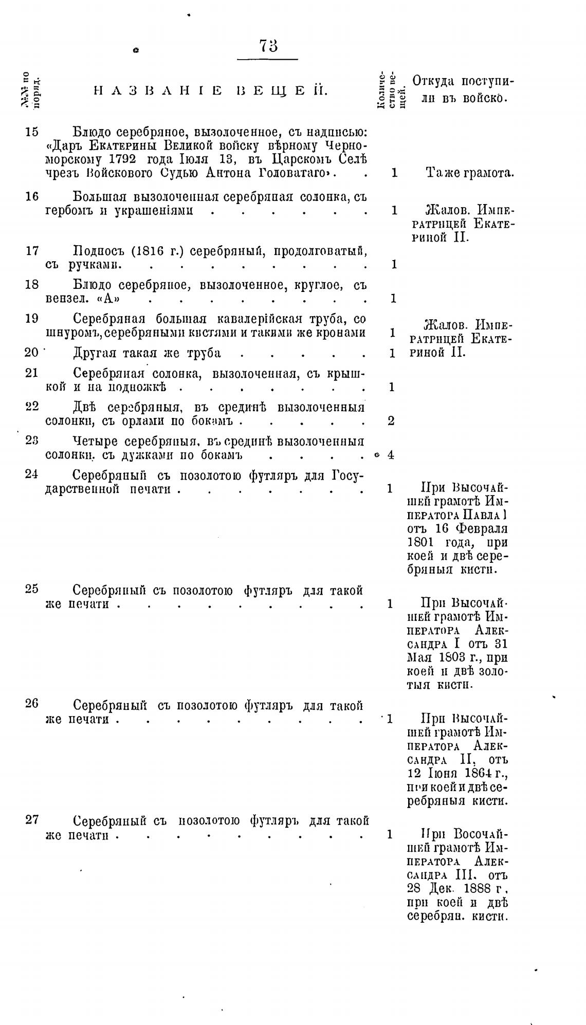 «Дарь ЕКАТЕРИНЫ ВЕЛИКОЙ войску в%рному Черно-