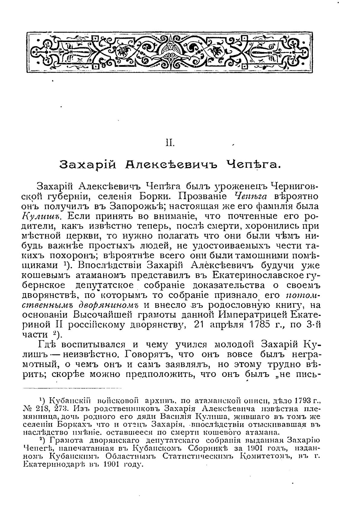 ЧепегЬ, напечатанная въ Кубанскомъ Сборник•н за 1901 годъ, издан-