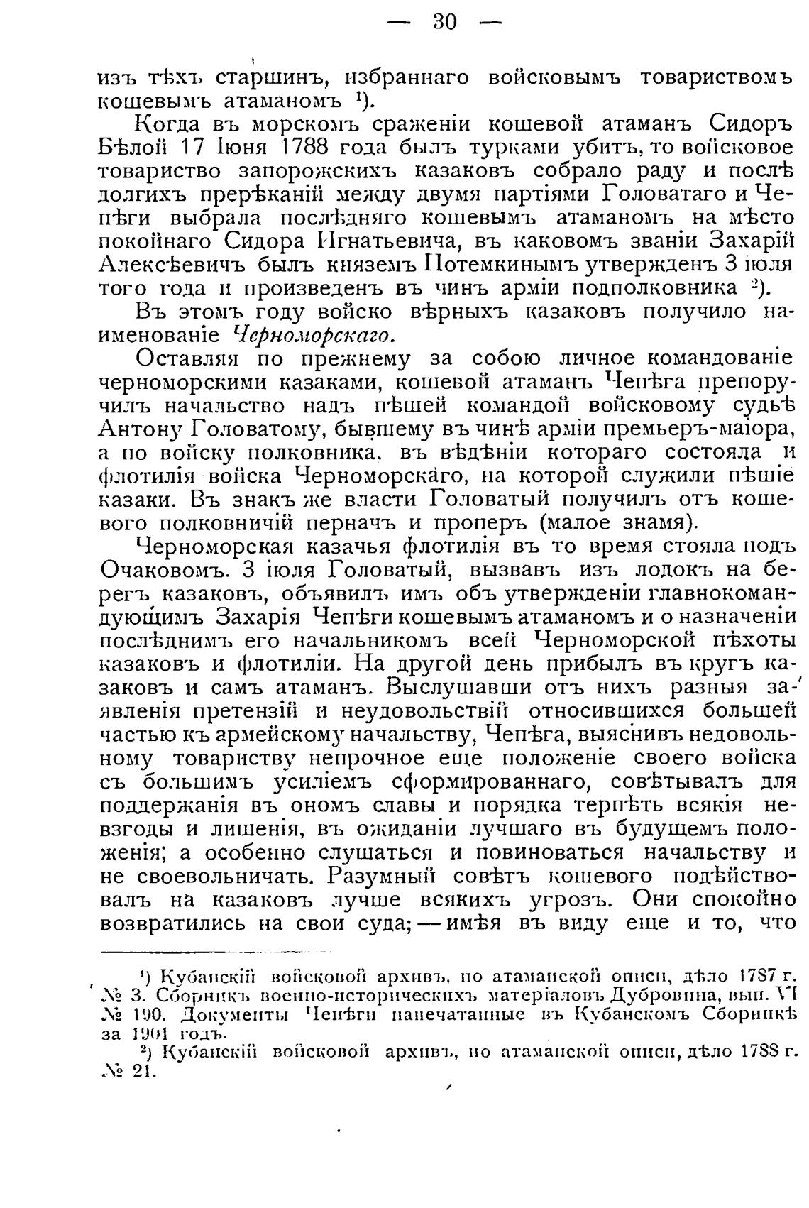 190. Документы Чепј;ги напечатанные въ Кубанскомъ Сборнпк±