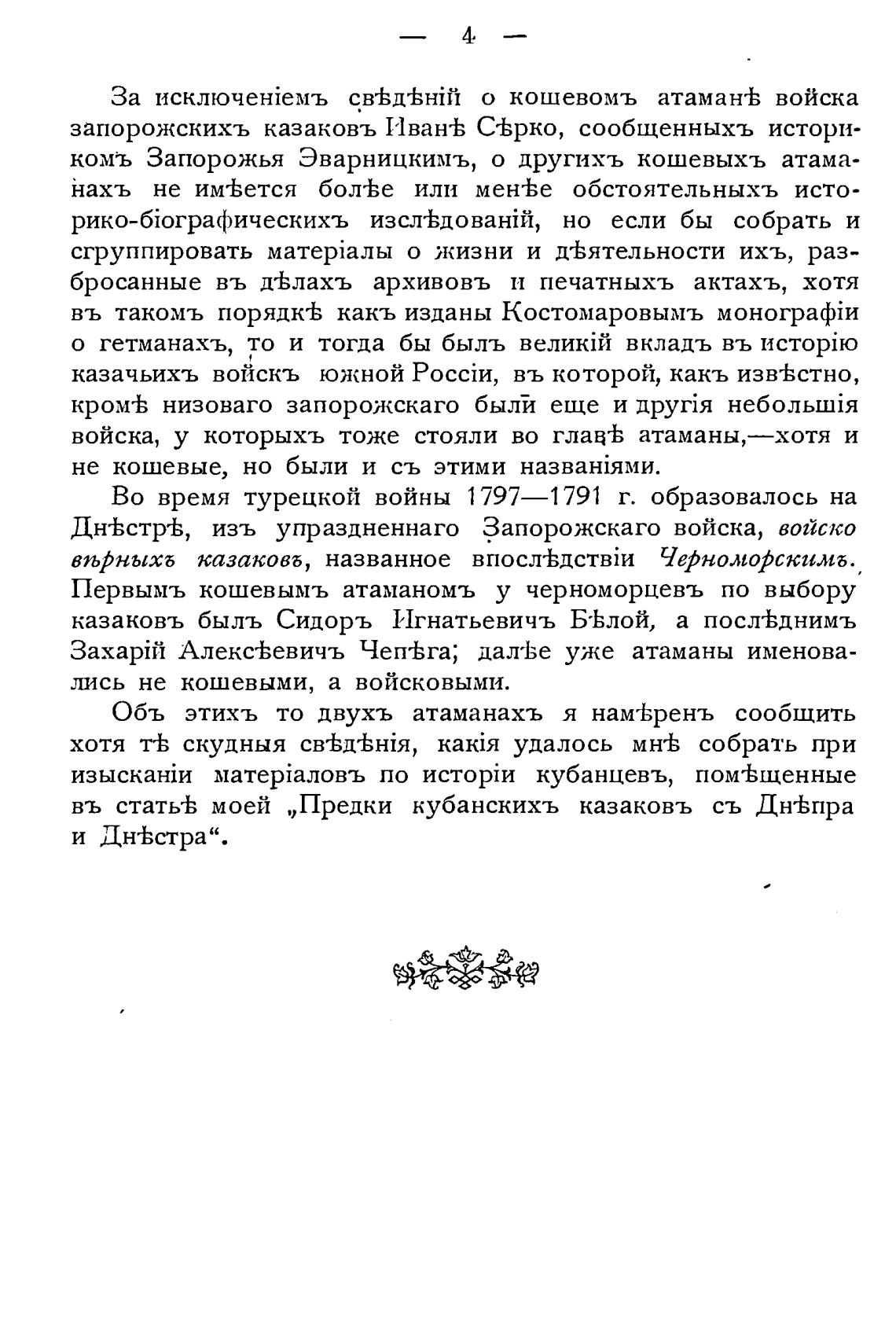казаковъ быль Сидоръ Игнатьевичъ Б•Ьлой, а пос-тЬднимъ