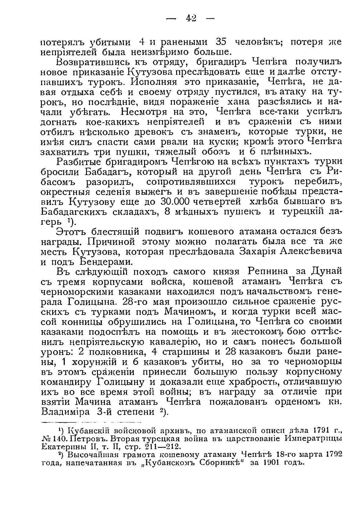 павшихъ турокъ. Исполняя это приказан\е, Чеп±га, не да-